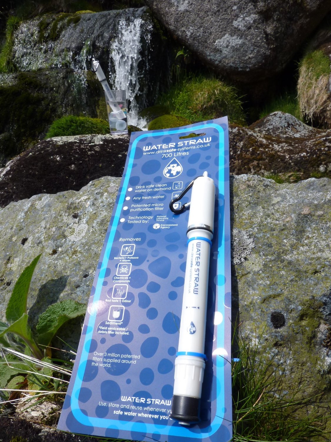 Drinksafe Waterstraw 700 litre Personal pure water filter A patented technology ultralight waterstraw filter with closure cap delivers clean safe drinking water wherever you are: Stream, pond, river or hotel iced water. Removes pathogens including viruses,anthrax, crytosporidium, giardia, E-coli, schistomas and helminths in untreated water. Filters out chemicals and bad taste making water taste as good as bought bottle water. Excellent draw rate. Outstanding water delivery to 700 litres -Re use and store and re-use time and time again. Inbuilt anti-bacterial media. |