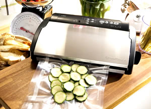 The vacuum sealer shown here is the Food Saver Vacuum Sealer and will vacuum seal both moist and dry foods ready for easy storage.